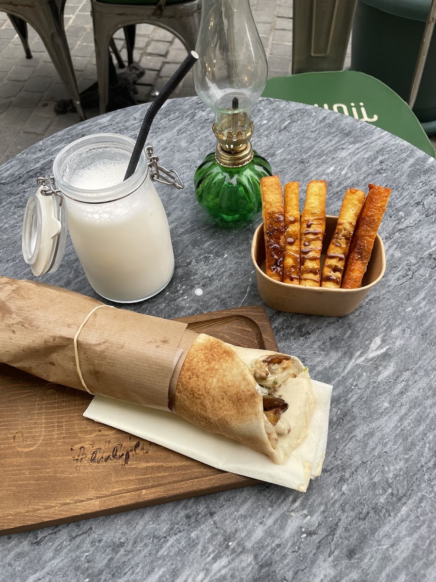 We were looking for vegan options and found this gem! The falafel was incredibly fresh and flavorful. We also tried the Ayran—it was homemade and delicious. The place has a warm, cozy vibe, and we absolutely loved it. Highly recommend!